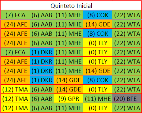 Un Artículo en el que escribíamos que (Antes de sus Decimoséptimos Partidos, Aunque No haya Variado con esos Decimoséptimos Partidos) el “Quinteto formado por los Jugadores Más Habituales en Quintetos Iniciales” era el formado por: