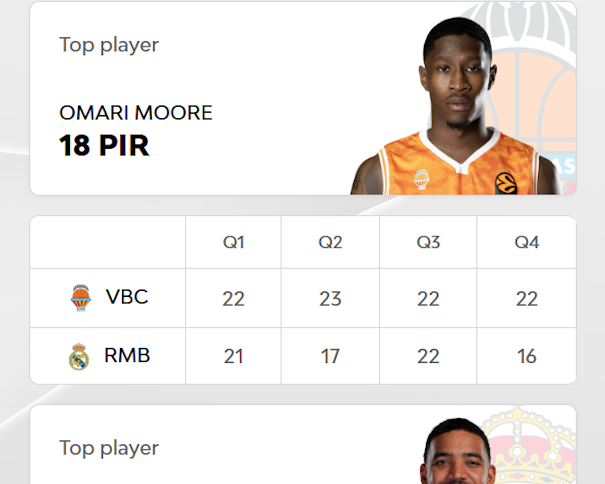 En un Partido cuyo MVP era el Inicial (10) Omari Moore, con 18 de Valoración (Aunque No fuera el Jugador con la Mayor Valoración del Partido).