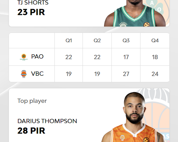 Su (También) Novena Victoria en estas 14 Primeras Jornadas, en un Partido cuyo MVP era el (También) Inicial (13) Darius Thompson (con Pasaporte de la República -parlamentaria– Italiana, por Matrimonio), con 28 de Valoración, con su Mayor Valoración de lo que va de Temporada (de sus 24 Primeros Partidos de la Temporada), Igualando la Segunda Mayor Valoración de Jugador alguno del València en esos 24 Primeros Partidos (de la Temporada).