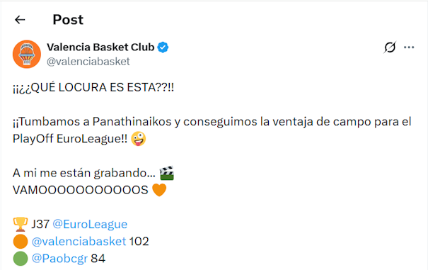 Su Vigesimotercera Victoria en estas 37 Primeras Jornadas, siendo el Cuarto de los 20 Equipos que han Iniciado esta Décima @EuroLeague “de Todos contra Todos” en conseguir ese Número de Victorias y 1 de los 4 Primeros Equipos en Asegurar su Clasificación para los @EuroLeague Playoffs 2026.
