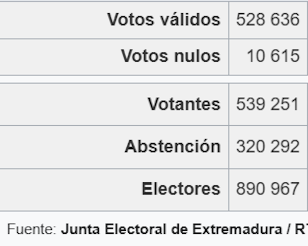 Pues bien, para “hacer una lectura real y correcta de lo que ha pasado en Extremadura” veamos una serie de Datos.
