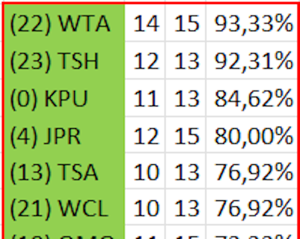 Como No es lo mismo haber formado parte de Todos los Quintetos Iniciales Menos 1 siendo ese “Todos” 15 que 13, si hablamos de Porcentaje de veces en los Quintetos Iniciales, el Macaronésico ex-NBA (22) Walter “Edy” Tavares ha formado parte de 14 de los 15 Quintetos Iniciales del Madrid (de un 93.33% de esos 15 Quintetos Iniciales).
